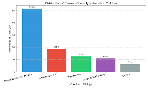 Dominance of Inherited Causes: Studies, such as those conducted in Eastern Europe and Central Asia, indicate that Hereditary Spherocytosis remains the most common cause of pediatric haemolytic anemia, often accounting for over 50% of new diagnoses. This is followed by autoimmune types and thalassemias.