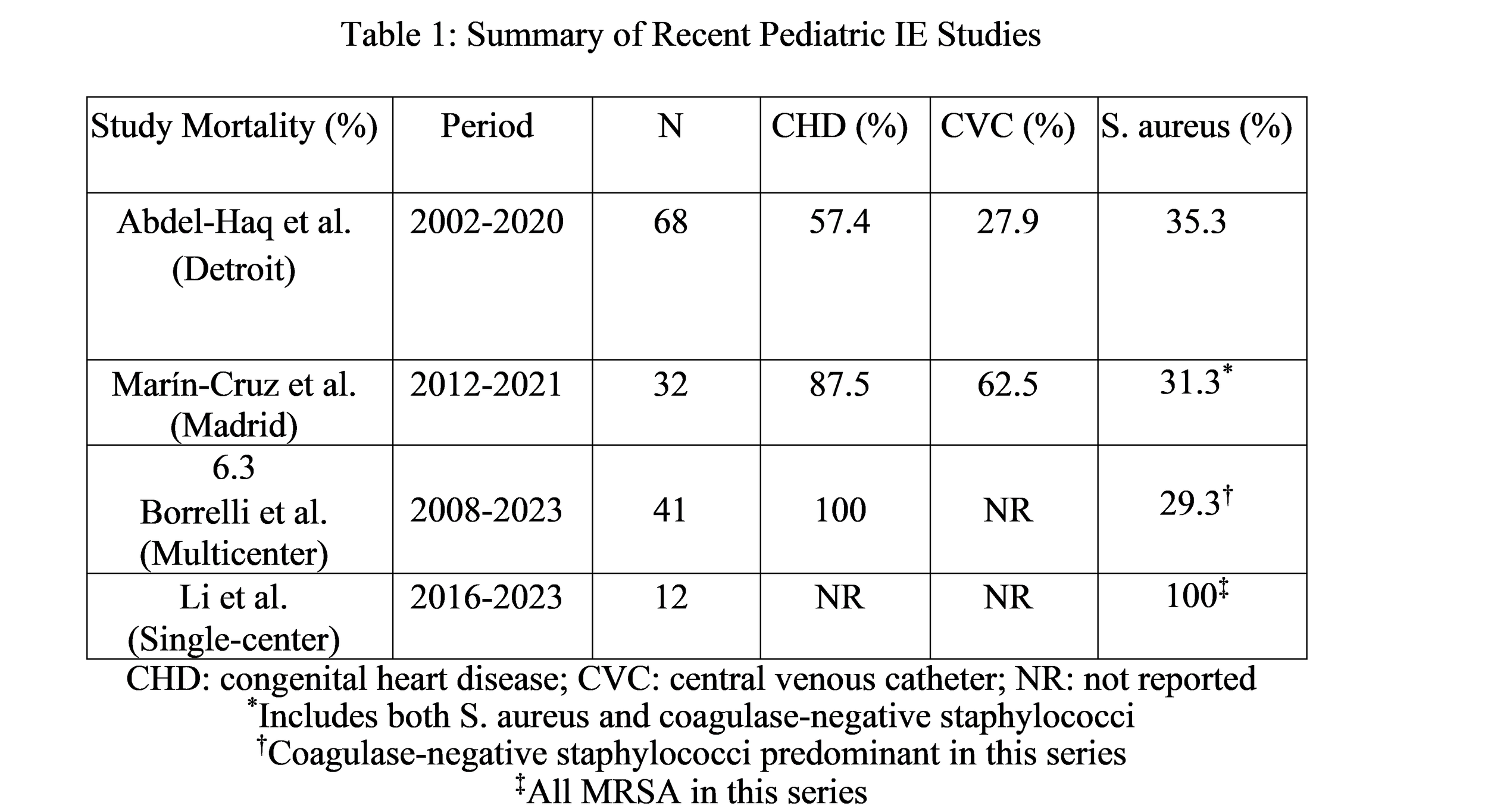 [2] Borrelli, Nunzia, et al. “Infective Endocarditis in Pediatric Patients with Congenital Heart Disease: Results from a National Multicenter Study.” Pediatric Cardiology, 2025. Epub ahead of print.