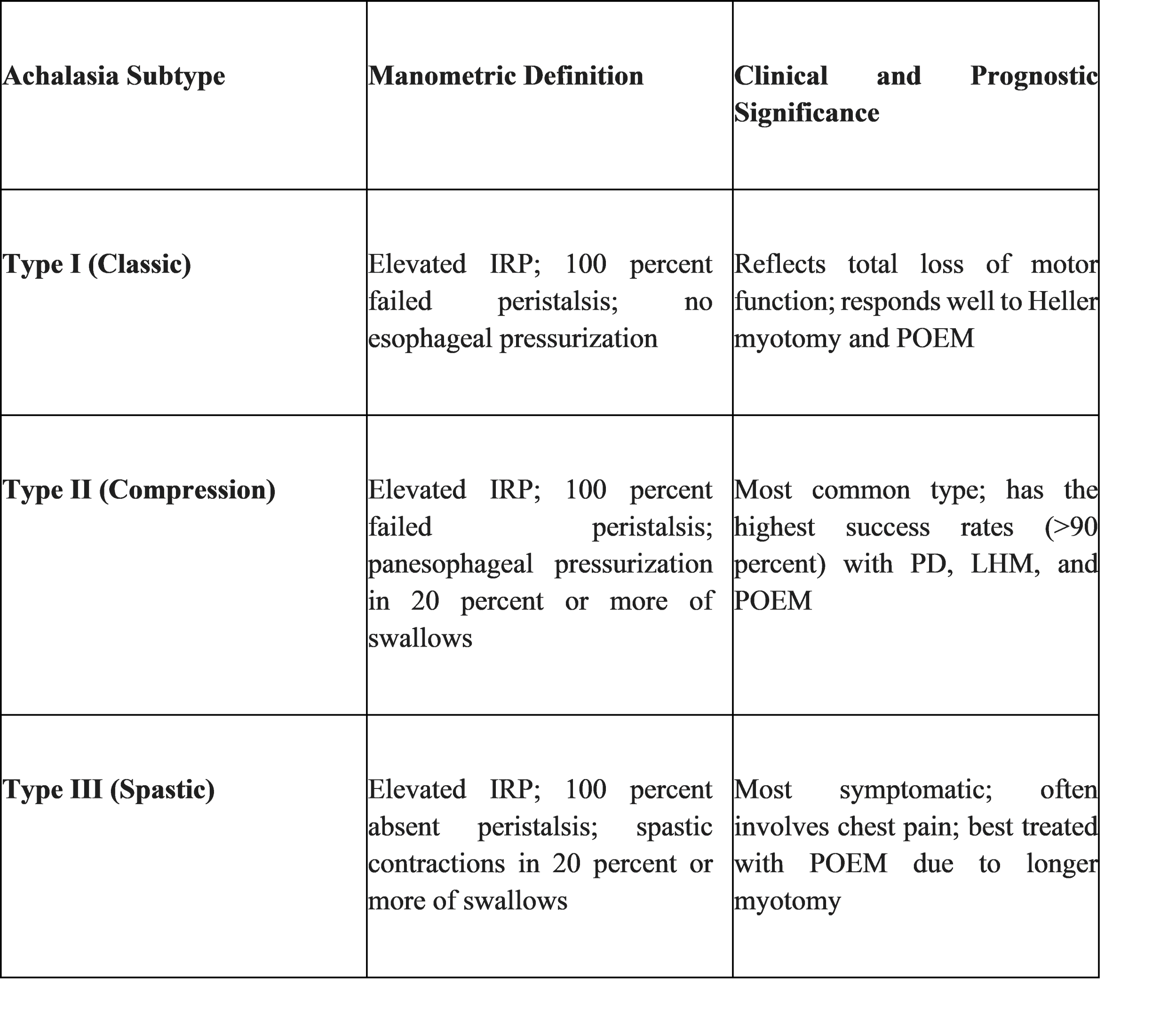 22. An Overview of Achalasia and Its Subtypes - PMC, accessed March 22, 2026, https://pmc.ncbi.nlm.nih.gov/articles/PMC5572971/