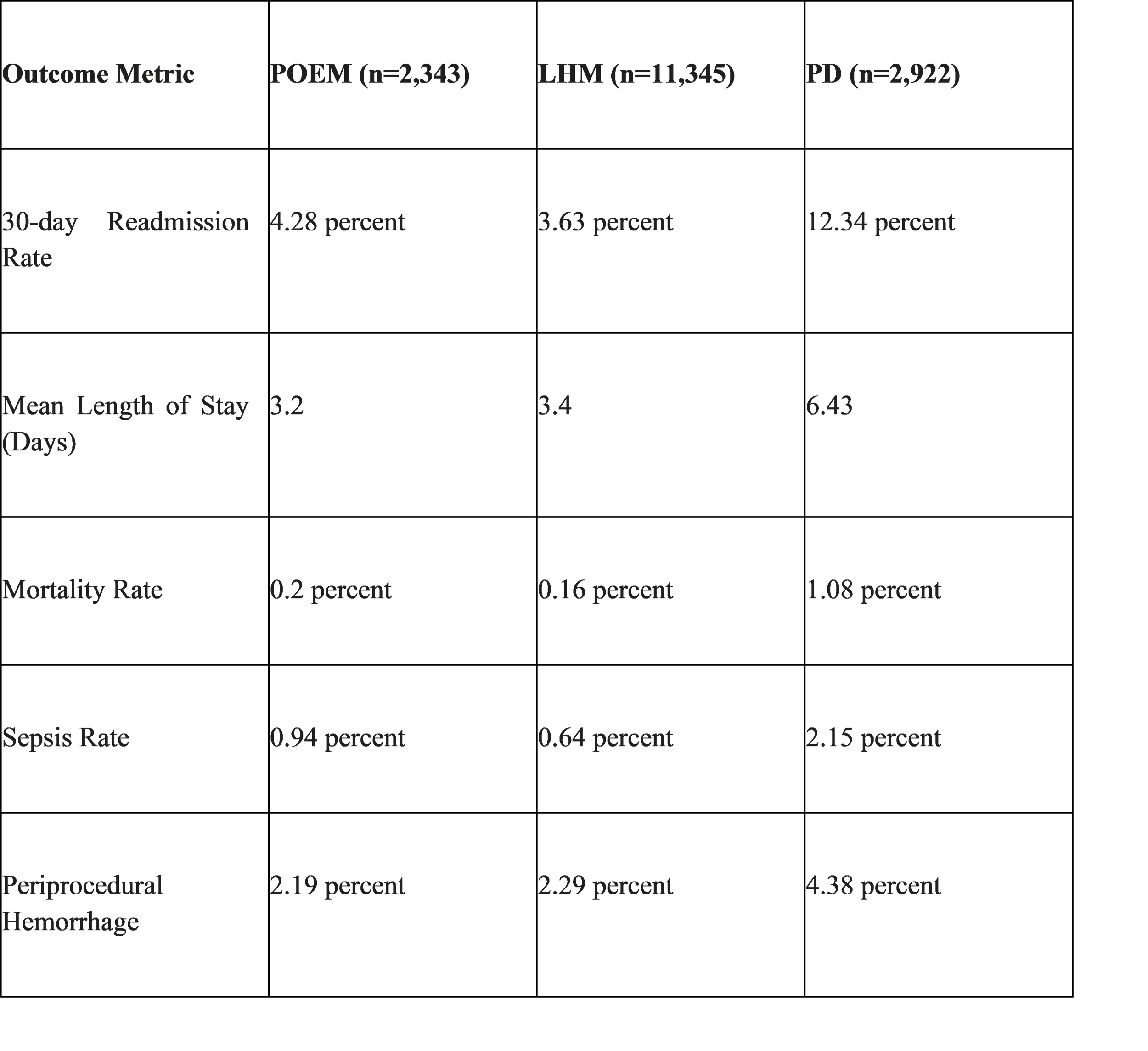 A comprehensive US national study analyzing 16,610 index achalasia admissions between 2016 and 2020 revealed significant differences in 30-day readmission rates.3 Patients who underwent pneumatic dilation had a readmission rate of 12.34 percent, which was significantly higher than those who underwent POEM (4.28 percent) or LHM (3.63 percent).3