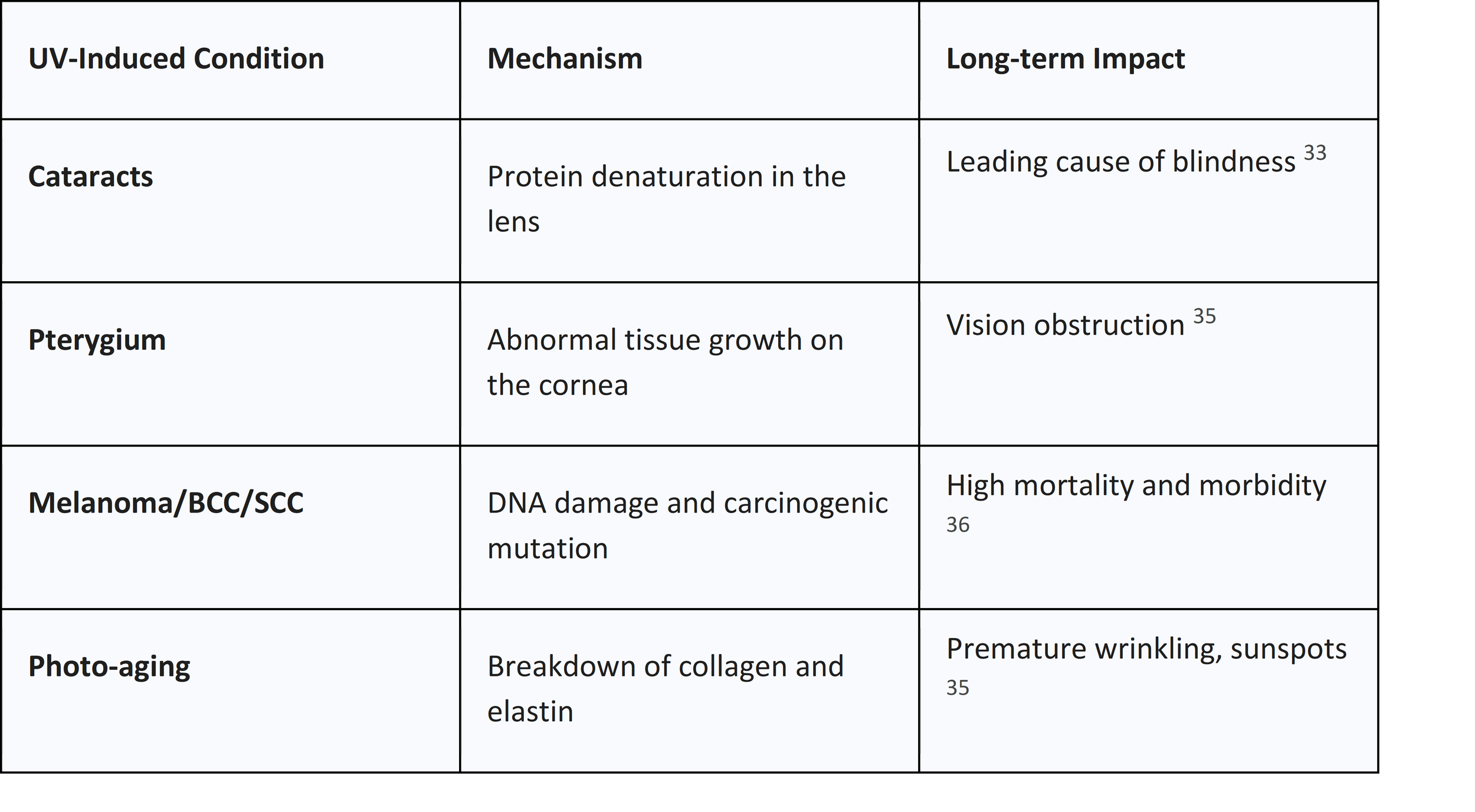 ○ Education: Explain the link between UV and cataracts.50