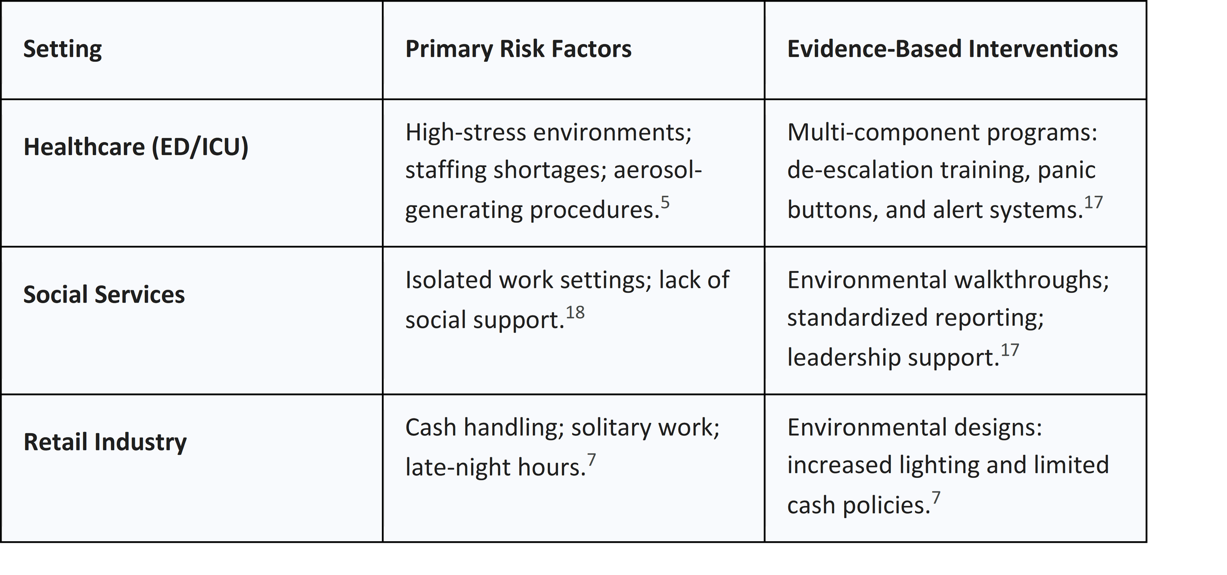 Workplace violence (WPV) is an escalating occupational hazard, particularly within healthcare and retail.18 In healthcare, the COVID-19 pandemic catalyzed an increase in violent incidents due to staffing shortages and systemic burnout.19