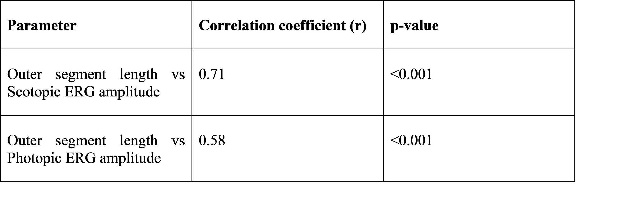 ● Outer segment length correlated strongly with ERG amplitude.