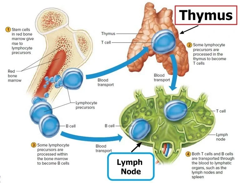 · T-Lymphocyte:The main significance of the thymus is the development of T lymphocytes. Immature cells migrate from the bone marrow to the thymus for differentiation into T cells.