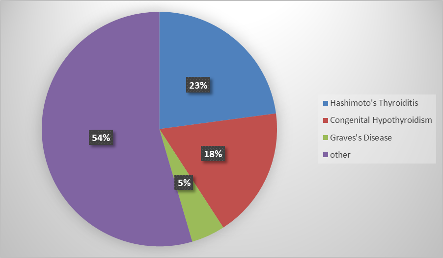 Childhood and teenage thyroid conditions (goiter, hypothyroidism, hyperthyroidism, autoimmune, etc.). Of the approximately 800 children with thyroid issues in a pediatric/adolescent clinic series, approximately 79% had hypothyroidism (goitrous or non-goitrous), approximately 19% had euthyroid goiters, and approximately 2% had hyperthyroidism.